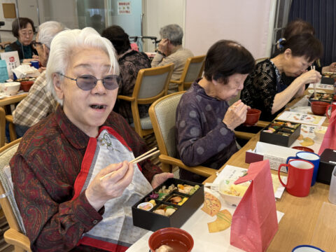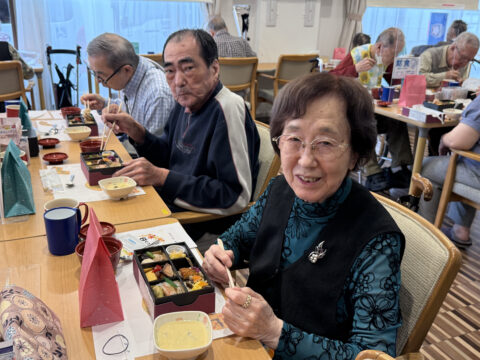 ゴールドヒルズ敬老会! 2025.09.22ブログ 9/21敬老会を開催いたしました! 昼食は特別食として「なだ万」の御膳をご用意! みなさんとてもおいしそう! いつもは少食の方も、今日は完食されていました! そして、のど自慢大会も! いつまでも元気で笑顔でお過ごしください。 ゴールドヒルズ平岸スタッフ一同